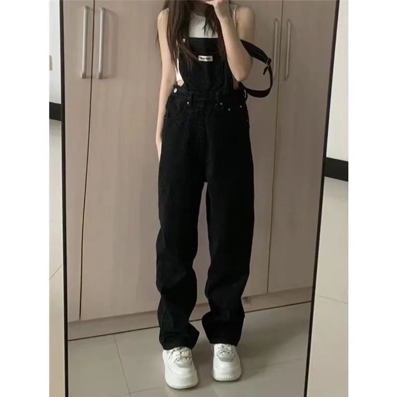 Product information: Fabric name: denim Color: dark blue suspender pants, black suspender pants Main fabric composition: Cotton Waist type: high...