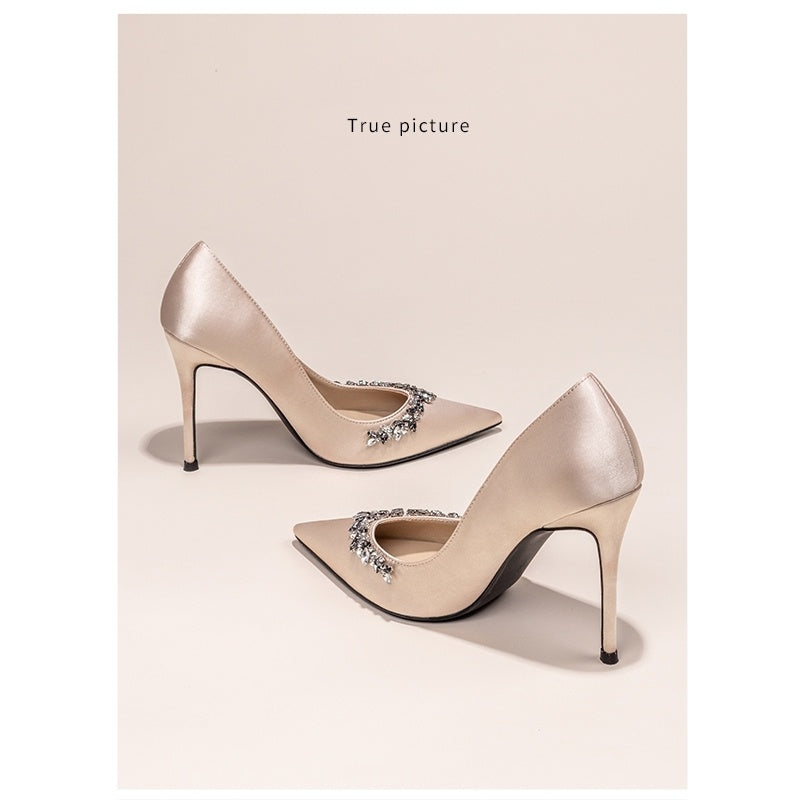 Women's Stiletto Pointed Toe French Style Rhinestone High Heels